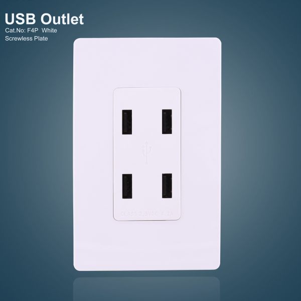 TOPELE White 4 USB Ports electric USB outlet with screwless plate